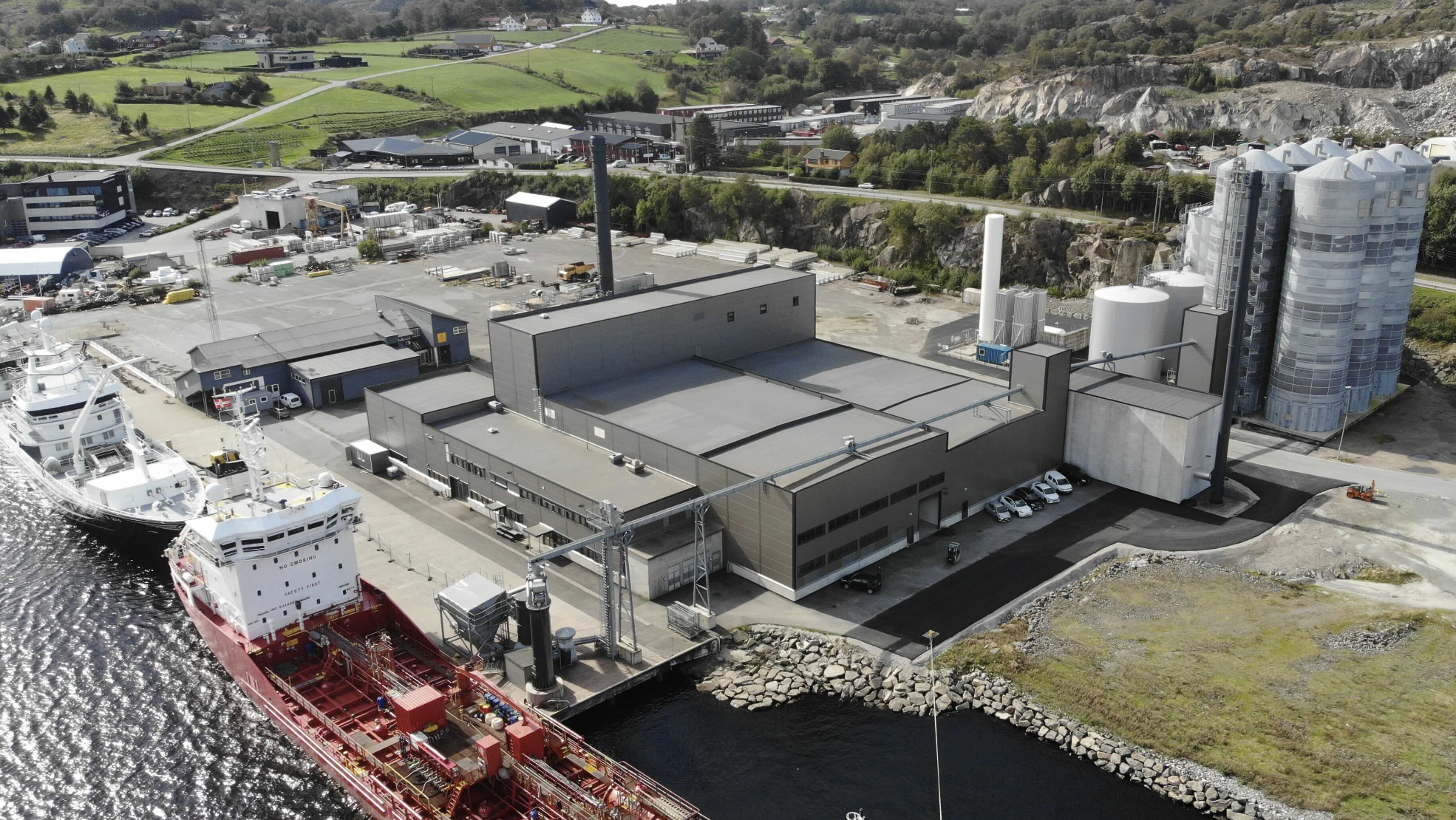 Athafnasvæði Prima Protein við Egersund á suðvestur-strönd Noregs. Ljósmynd: Prima Protein.